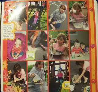 Each Year I do a two page spread for each girl about the first day of school. My favorite picture has now become an yearly ritual. Daddy walking hand in hand with the girls to school. It is fun to see year after year how the girls grow compared to Dad. In one of my books I have him holding one girl on each hand and carrying a toddler on his back. Precious!